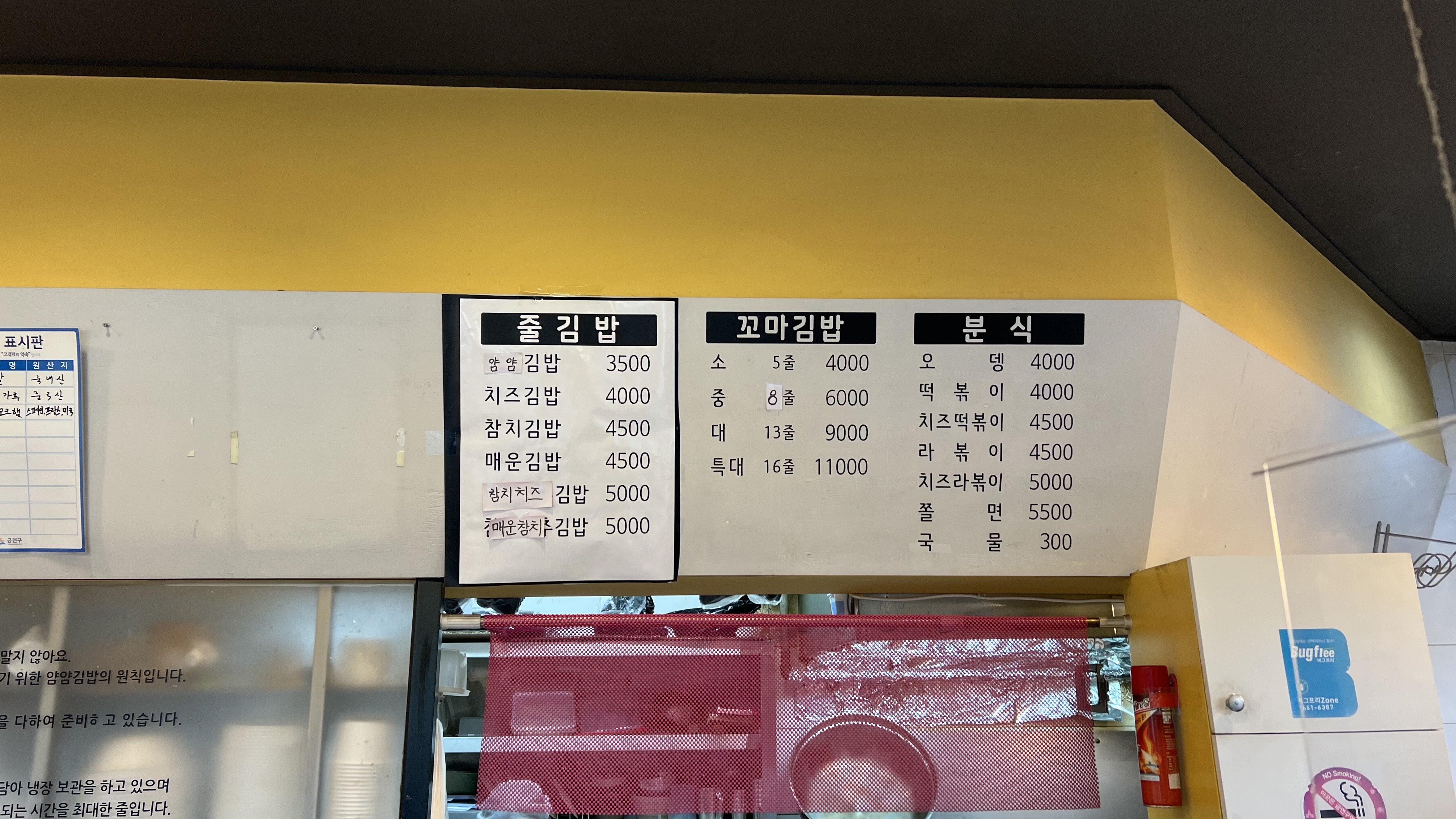 김밥전문공간 얌얌 시흥동본점 메뉴판.